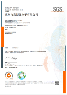 创立并控股香港高斯实业有限公司;通过ISO9001:2015换版认证和IATF16949:2016认